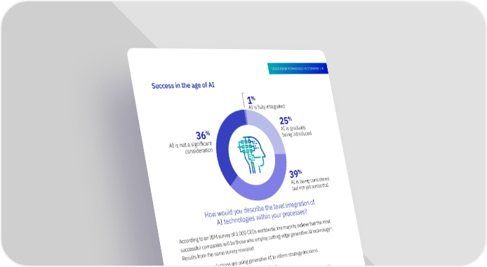 LEADERSHIP REIMAGINED WHITEPAPER | 9 Success in the age of AI % 1 AI is fully integrated % 25 % AI is gradually 36 being introduced AI is not a signi昀椀cant consideration % 39 AI is being considered but not yet sustantial How would you describe the level integration of AI technologies within your processes? According to an IBM survey of 3,000 CEOs worldwide, the majority believe that the most 11 successful companies will be those who employ cutting-edge generative AI technology . Results from the same survey revealed: • 43% of organisations are using generative AI to inform strategy decisions. • 36% are using it to guide operational decisions. 12 • 50% are integrating generative AI technology into their products and services About generative AI Generative AI technology refers to arti昀椀cial intelligence (AI) designed to generate content or data, often in the form of text, images, audio, or other media. This technology is particularly adept at creating content that appears to be produced by a human, and it is based on models that have been trained on large datasets of existing human- generated content. 11 IBM Institute for Business Value, CEO Decision-Making in the Age of AI, 2023 11 IBM Institute for Business Value, CEO Decision-Making in the Age of AI, 2023